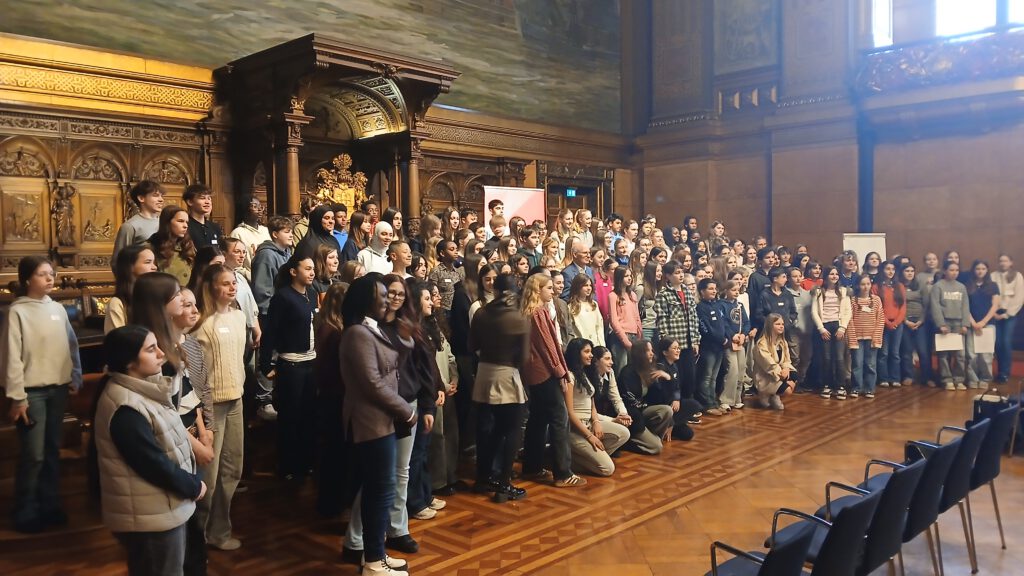 Die Mädchen und Jungen zwischen 10 und 14 Jahren hatten erst einmal im Rathaus ein tolles Programm: Zusammen mit über 150 weiteren Kindern und Jugendlichen aus diversen Abgeordnetenbüros wurden sie zunächst im großen Festsaal von unserem Fraktionsvorsitzenden Dirk Kienscherf begrüßt.