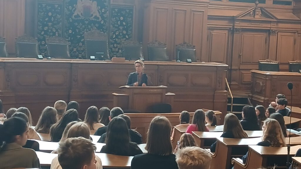 Zum Schluss ging es dann für alle noch einmal in unseren Plenarsaal, wo unsere Bürgerschaftspräsidentin Carola Veit sich auch sehr über die große Zahl freute, eine kurze Rede hielt und ebenso noch zahlreiche Fragen beantwortete.